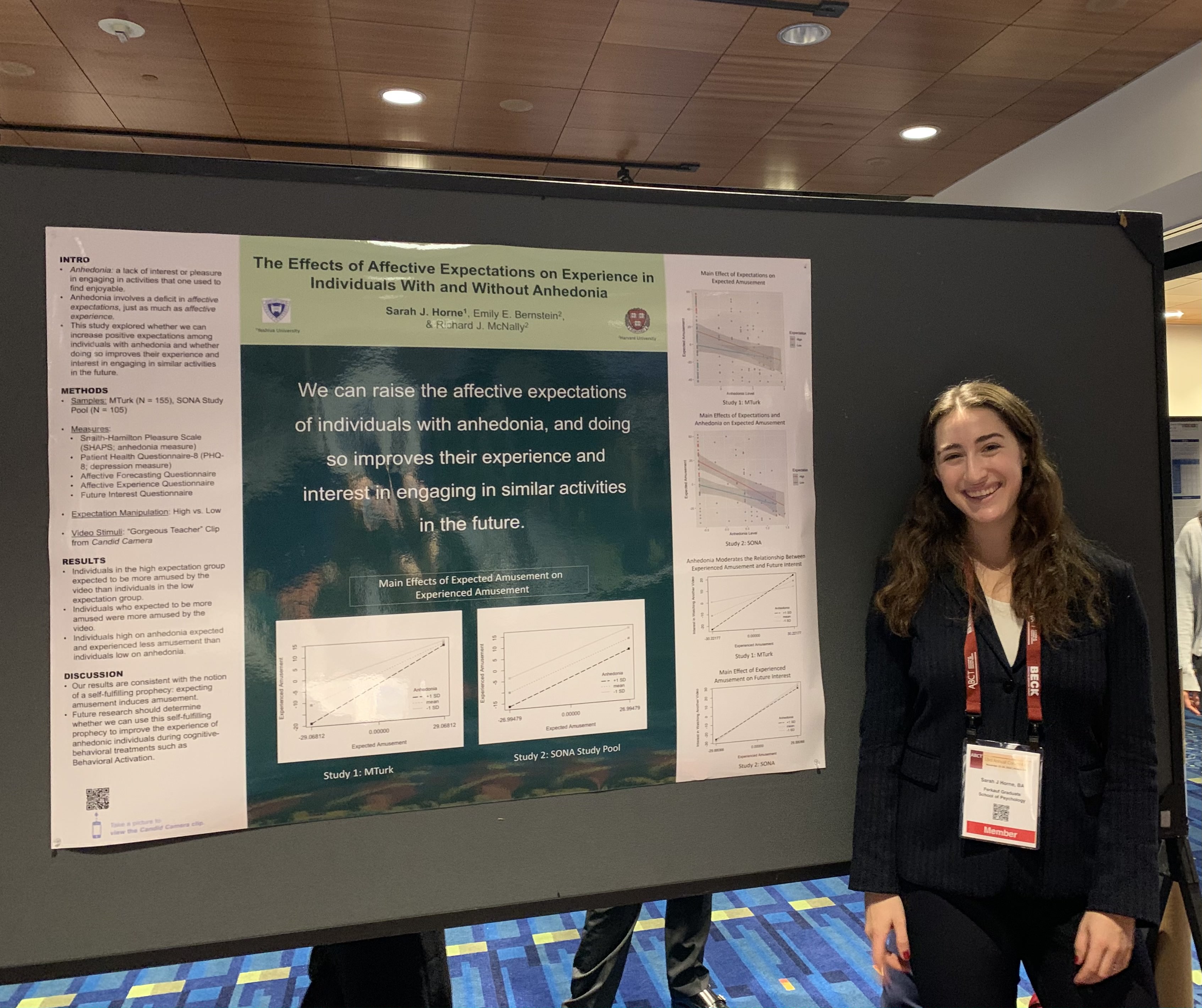 News & Events - Clinical Psychology, PsyD FERKAUF SCHOOL OF PSYCHOLOGY Our Doctorate Program in Clinical Psychology is an APA accredited full-time doctoral degree. Get top clinical experience with practica & internship after completing the coursework. How to Apply Artificial Intelligence Biotechnology Computer Science Cybersecurity Data Analytics and Visualization Digital Marketing and Media Mathematics Occupational Therapy Physician Assistant Physics Speech-Language Pathology News and Events Fall 2025 Sophia Glinski will be presenting her original doctoral research at the 59th Annual ABCT Convention in New Orleans this November. Sophia’s research, entitled "The Hidden Battle: Shedding Light on Student-Athlete Mental Challenges," examines the prevalence of mental health conditions among collegiate athlete populations. Congratulations to Regina Bowler for recently presenting a poster at the American Counseling Association Conference in Orlando, Florida! She presented a poster about a multi-week mental health seminar she designed for college students that incorporates narrative therapy, accessible neuroscience, somatic work, social-emotional skill building, and executive function. Her design was informed by her internship at Manhattanville University's Student Health and Counseling, and on feedback from diverse students, administrators, and faculty about the mental health challenges and needs of college students and deficits in services currently available to them. Summer 2025 Congratulations to Dr. Gabi Khazanov for recently being cited in an American Psychological Association practice report regarding firearm safety and suicide among veterans (link can be found here)! According to the report, more than half of suicides in the United States involve a firearm, making this research essential in suicide prevention! The report heavily emphasizes that a respectful, values-based conversation regarding firearms between clinician and patient is an important step in helping patients stay safe. Dr. Khazanov’s research (link can be found here) in lethal means safety counseling (LMSC) recommends that clinicians should approach LMSC in a nonjudgmental manner with awareness of their own biases, demonstrate cultural competency by acknowledging the roles of firearms in the patient’s lives, and adapt LMSC to the patients’ previous experiences with firearms. Let us congratulate Dr. Khazanov for conducting research that contributes to an essential area of study! Spring 2025 ln April, Dr. Kailey Roberts and all four fourth-year students in her lab attended and presented posters at the Association for Death Education and Counseling (ADEC) in Albuquerque, New Mexico. Julia Norman (pictured, left) presented her study "Stories of Perinatal Loss: Lived Experiences and Support Needs", Jiaqi Li (pictured, right) presented her "Narrative Review On Mental Health Professionals' Experiences Following a Patient Suicide", Micaela Raviv presented "Emerging Adults Bereaved by Advanced Parental Cancer" and Fortune Manopla presented "An Exploration of Grief-Focused Psychotherapies." Congratulations to Julia Norman, Jiaqi Li, Micaela Raviv, and Fortune Manopla! Casey Stern submitted a Ruth L. Kirschstein National Research Service Award (NRSA) Individual Predoctoral Fellowship (F31) grant to the National Institute of Mental Health to support her dissertation project titled "Pilot trial of a brief digital intervention combining cognitive-behavioral therapy and mindfulness training for avoidant/restrictive food intake disorder." Casey will also present her and Dr. Sala's findings from a longitudinal network analysis of self-compassion and eating disorder symptoms in a community sample at the 2025 International Conference on Eating Disorders at the end of May. Good luck to Casey! Alexis Aberman, a third-year PsyD student, and Talia Rosen, a first-year PsyD student, in Dr. Bloch-Elkouby's Lab for Suicide Prevention and Psychotherapy Research have been named as the recipients of the North American Society for Psychotherapy Research John and Elaine Altmaier Depression Research Grant. Their qualitative research project will explore the impacts of self-compassion and the therapeutic alliance on recovery from suicidal ideation and behaviors. The study will involve interviews with former patients who consider themselves recovered from suicidality, as well as the therapists whom they credit as instrumental in their recovery. After qualitative data from interviews have been collected and analyzed, participants will be invited to participate in focus groups, during which these individuals with lived experience will provide invaluable feedback on ways to implement and disseminate the insights gained throughout the study. This grant will allow for the compensation of patient and therapist participants, as well as consultation from Dr. Ursula Whiteside, an expert with lived experience. Alexis Aberman, a third-year PsyD student in Dr. Bloch-Elkouby's Lab for Suicide Prevention and Psychotherapy Research was named a recipient of the Society for the Advancement of Psychotherapy's Student Research Grant. Her qualitative dissertation project will focus on individuals with lived experience who view themselves as recovered from suicidality. Her research will explore patient experiences of what they view as contributing to their recovery from suicidality, both inside and outside of treatment. This grant will allow for the compensation of participants and the compensation of Dr. Ursula Whiteside, an expert with lived experience, who will serve as a consultant to the research team. Congratulations to Dr. Ken Critchfield for publishing a new article titled "The 'Gift of Love' as a Candidate Mechanism of Psychopathology and Change in Interpersonal Reconstructive Therapy for Patients with High-acuity Clinical Needs." Additionally, congratulations to Akiva Gornish and Lea Epstein for being co-authors for Ken's paper (both are Ferkauf students who a