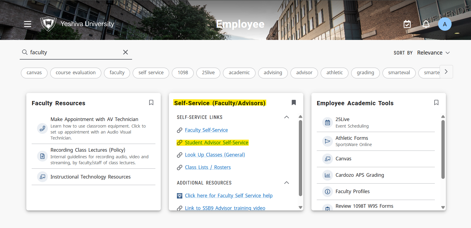 Faculty and Staff Registrar Information Artificial Intelligence Biotechnology Computer Science Cybersecurity Data Analytics and Visualization Digital Marketing and Media Mathematics Occupational Therapy Physician Assistant Physics Speech-Language Pathology OverviewIt is our hope that the information below will assist faculty in answering their most frequently asked questions. Faculty who have additional questions or concerns can contact the Office of the Registrar for additional support. Our contact information is available here. Self-Service Banner for Faculty In most cases faculty of record in a given course will access Banner Self Service (Available through Inside Track) to enter grades, view classroom locations, and view class lists.(Click to enlarge) To access Banner Self-Service:Log into to InsideTrackLocate the "Self-Service (Faculty/Advisors)" CardClick on "Faculty Self-Service" Class Lists Class Lists are available to faculty, with real-time changes, in Banner Self Service (Available through Inside Track).(Click to enlarge) To access Banner Self-Service:Log into to InsideTrackLocate the “Self-Service (Faculty/Advisors)” cardClick on “Faculty Self-Service”Then, choose Class List from the Faculty Services Dashboard(Click to enlarge) You will be presented with a list of classes for which you are the assigned instructor. You can filter this list to a specific semester using the "All Terms" drop-down.(Click to enlarge) Once you have located the CRN for which you would like to obtain the class list, double-click on the Enrollment Count for that course.Click on Export in the upper right corner to generate the class list as a spreadsheet.Click on Print in the upper right corner to print a copy of the class list, or to print to PDF.(Click to enlarge) If you have any difficulty viewing your list or do not see the classes and/or students you expect to, please contact us. Faculty should review their lists weekly during the first month of classes to ensure accuracy.Faculty should notify the Office of the Registrar within 24 hours if they notice the following:A student is sitting in class who does not appear on the class listA student is on the roster but has not attended classA student stops attending class and is deemed to have withdrawn from the course Grades Faculty may submit grades online through Banner Self Service (Available through Inside Track).(Click to enlarge) To access Banner Self-Service:Log into to InsideTrackLocate the “Self-Service (Faculty/Advisors)” cardClick on Faculty Self-ServiceThen, choose Faculty Grade Entry from the Faculty Services Dashboard(Click to enlarge) The Faculty Grade Entry screen will open in a new window. You will see a list of classes for which you are the assigned instructor, under the heading My Courses.(Click to enlarge) To enter grades for a given CRN, click anywhere on the row for that CRN. A list of registered students will then expand below the list of CRN's, under the heading Enter Grades.Click on the Final Grades drop-down next to each student to enter the student's grade.You can also review a student's Student Profile page by clicking on he student's name.Use the up and down arrows between My Courses and Enter Grades to expand and collapse the lists.Once you enter grades, or if you need to leave and come back, be sure to scroll to the bottom of the page and click save in the lower right corner because it will time out.(Click to enlarge) For technical support please contact us.Please note, faculty are expected to submit grades no later than 72 hours after the final exam. This deadline may be different for graduate programs. Incomplete Grades When entering grades for Fall 2025 onwards, after the instructor selects an “I” grade for a student, the system will add a separate required drop-down for the “Incomplete Final Grade”. This is the grade that the student would earn if they do not complete the remaining coursework.Initially only the “Final Grade” drop-down is displayed: On choosing an “I”, the “Incomplete Final Grade” drop-down appears, and faculty can choose the final grade to be applied if the student does not complete additional work: The student’s grade will initially be recorded as an incomplete. Before the listed extension date, incomplete grades can be updated by submitting an Incomplete Grade Form (available from the Faculty Self-Service Dashboard).After the extension date has passed, any remaining incomplete grades will be updated to the incomplete final grade specified above.In the event that an incomplete final grade must be changed later, instructors can submit a Final Grade Change Form signed by the dean. (This form is available from the Faculty Self-Service Dashboard). For more information, please see the Grade Submission Policy on the Provost’s Office Academic Policies web page. Self Service Banner for Advisors Academic Advisors can use Banner Self-Service (available through InsideTrack) to view a listing of their advisees, and to review individual advisees’ student profile information.(Click to enlarge) To access this information:Log into InsideTrackLocate the “Self-Service (Faculty/Advisors)” cardClick on “Student Advisor Self-Service”This will open the Advisee Search page in a new window.(Click to enlarge) To bring up a specific advisee, select the applicable term, then search for the student by name (recommended), student ID, or student email.When searching by name, the drop-down list of search results will update dynamically as you enter the last name.Once the advisee you are looking for has appeared in the drop-0down list, click on the student's name, then click on View Profile.(Click to enlarge) From the Student Profile page, you can access your advisee's academic transcript, link to the dynamic schedule search and registration history using the menu on the left. Canvas Courses are available in Canvas 30 days prior to the start of the semester. (45 days prior for Wurzweiler C